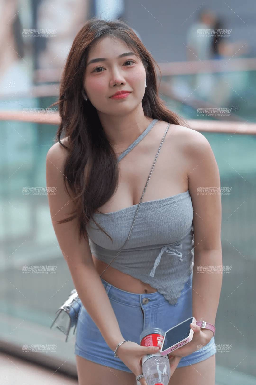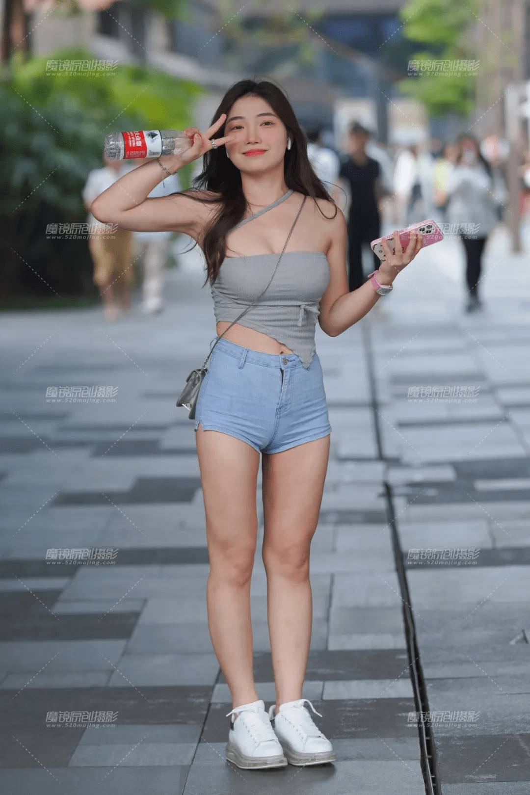 這個女孩的氣質很好。她一頭漂亮的長髮垂在背上,很有女人味。她有一張瓜子臉,五官精致。她是一個非常漂亮的女孩,加上精致的淡妝,會顯得更加美麗真實。女孩的穿搭很簡單,上身一件灰色短袖T恤,下身一條黑色三分牛仔短褲,短褲下的一雙大長腿特別顯眼,還有一雙腳上穿的是平底鞋。如果換成高跟鞋,相信會更時尚,更有魅力。