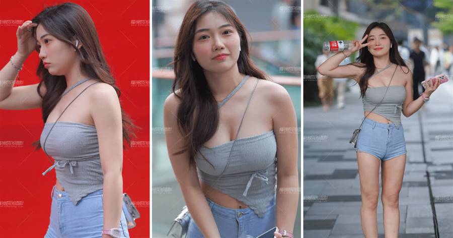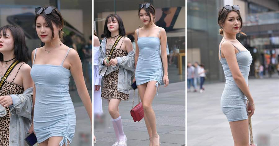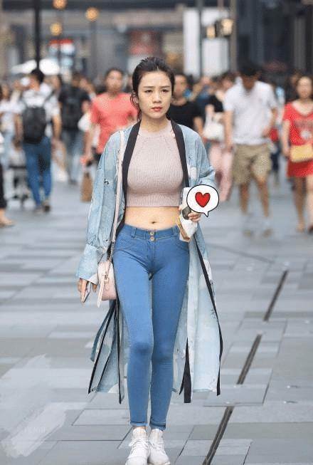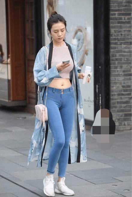 扎著丸子頭的小姐姐很高,皮膚白皙,五官端正。事實上,她身上的天藍色連衣裙只是一件長長的風衣。正是因為它的長度和寬度,它看起來像一件「披風」。小姐姐穿著一件掛脖子的針織上衣,好身材好曲線一覽無余。下裝穿著修身的牛仔短褲,緊身設計是長腿女孩的好選擇。一雙白色運動鞋讓她腳上的整體形象看起來干凈整潔。精力充沛的穿著讓小姐姐在街上變得如此與眾不同,星光熠熠。