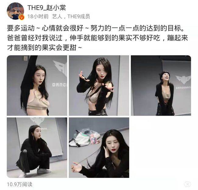 9月29日,趙小棠在個人社交賬號中更新了一條動態,曬出了6張自己做運動的照片,並分享了自己做運動的心得,還表示「爸爸曾經說過,伸手就能夠摘到的果實不夠好吃,蹦起來才能摘到的果實會更甜」,從趙小棠曬照時的配文來看,她還是挺正能量的,不過,她的配圖卻被網友們吐槽了。