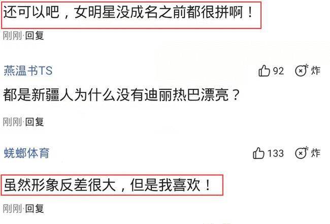 雖然古力娜紮的形象反差很大,但是並沒有被網友們吐槽, 有一位網友在評論區留言,「還可以啊,女明星沒成名之前都很拼啊」,還有一位網友在評論區留言,「雖然形象反差很大,但是我很喜歡」,古力娜紮形象的反差還獲得了網友們的讚美。